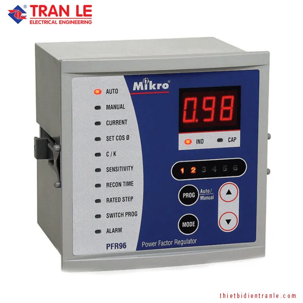 • Bộ điều khiển bù 6 cấp MIKRO PFR96P-415-50 sử dụng bộ vi xử lý điều khiển đóng ngắt tự động thông minh, tự động xác lập hệ số C/K hoặc cài đặt bằng tay.