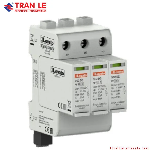 Thiết bị chống sét lan truyền LAVATO SG2DGK10M3R dòng xung 8/20ms. Bảo vệ chống quá áp và tình trạng điện áp tăng cao gây ra bởi sét đánh trực tiếp hoặc gián tiếp. Là thiết bị cắt sét dùng cho dòng điện một chiều DC, có dòng chống sét 1100V. Bộ Cắt sét lan truyền DC 1100VDC – LOVATO chủ yếu dùng trong hệ thống điện năng lượng mặt trời, có khả năng chịu đựng dòng xung sét 40KA.